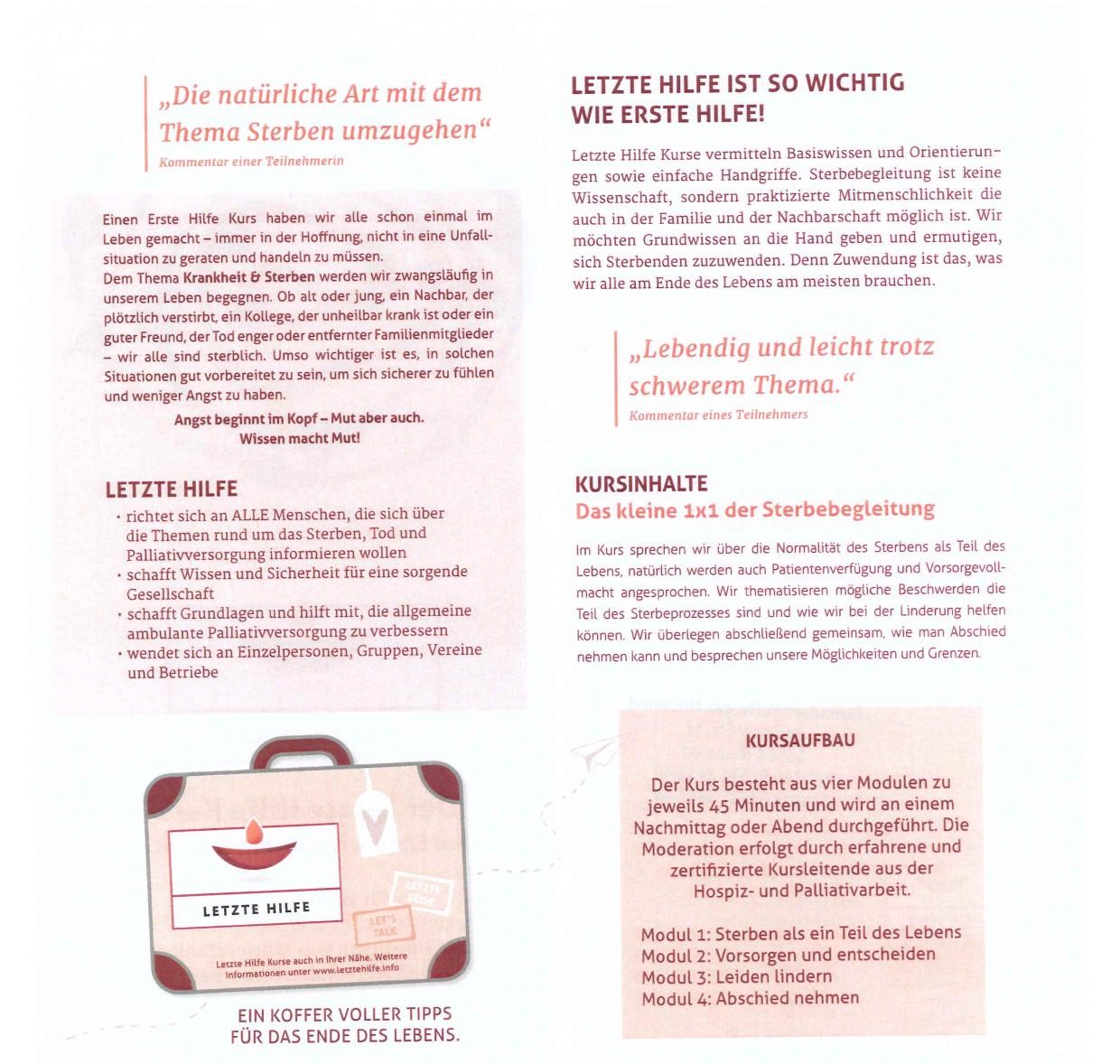 Seit ein paar Jahren gibt es das Konzept der “Letzte-Hilfe-Kurse”. Der Kurs wurde von dem Palliativ-